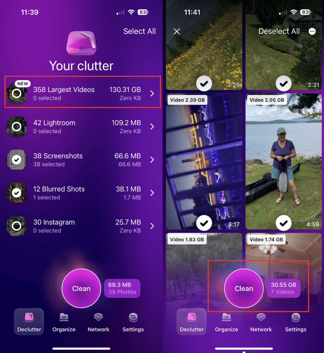 Photos and videos can take most of your space, and if you ehsitent to delete you old backups, it's better to use a tool that can help you with decluttering your media. CleanMy®Phone is the perfect app if you want to declutter your camera roll. The app helps finding the lagest videos, duplicates, similar photos, blurred images and more, so it's easy to delete photos and videos you don't need.