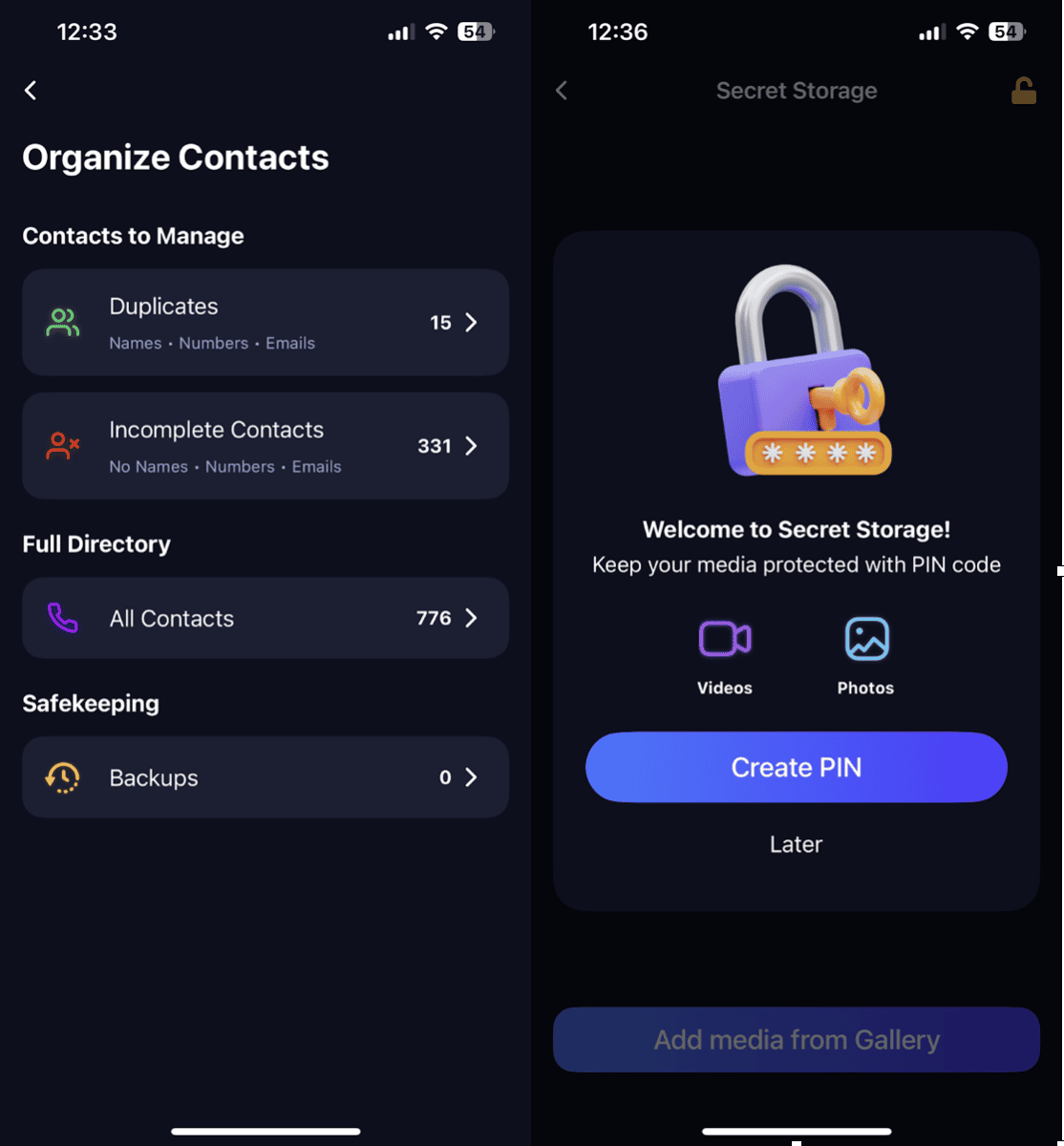 This one's clearly marketed for privacy-conscious users. You can move media into a locked folder that's PIN or Face ID-protected. I tested it with a few travel documents and screenshots; import was fast, and it doesn't show up in Photos. Useful if you're sharing your phone or backing up selectively.