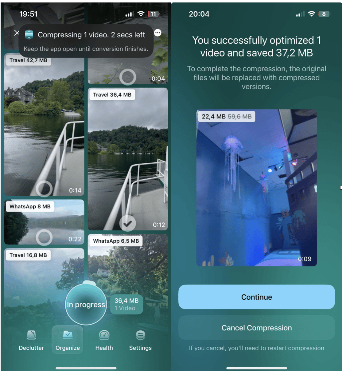 The same goes for videos. The compression tool helped shrink a few 4K videos by 40% with no noticeable loss. Here's how: