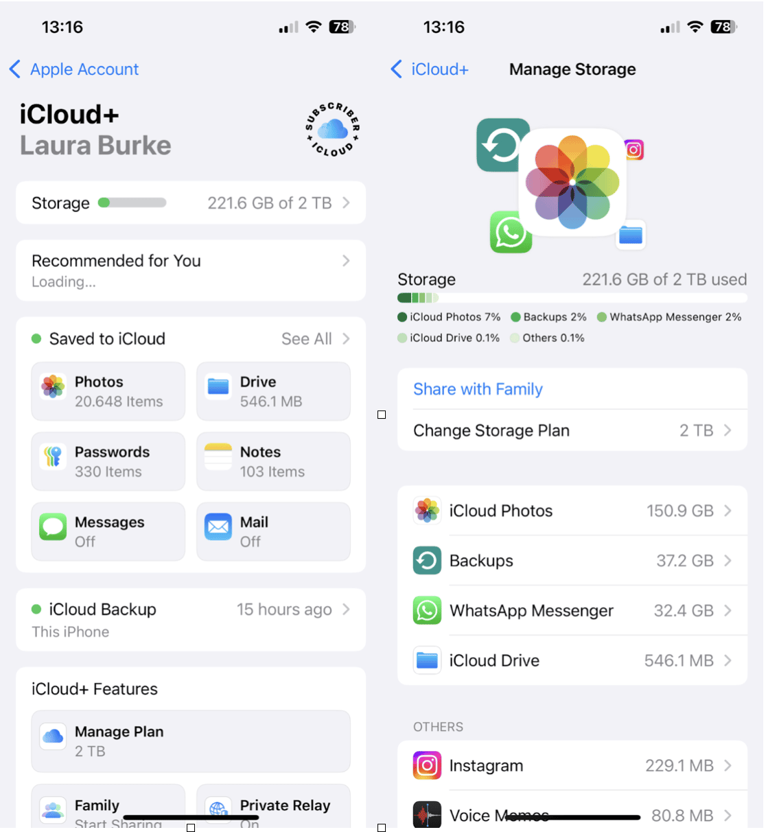Deleting unnecessary or old and forgotten items from your iCloud is instantly going to help you clean up your storage. Seeing the breakdown of your iCloud contents above gives you a great idea of the areas you need to clean up.
