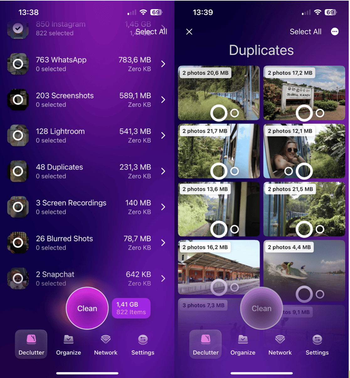 Select any photos and press Clean to remove them.
