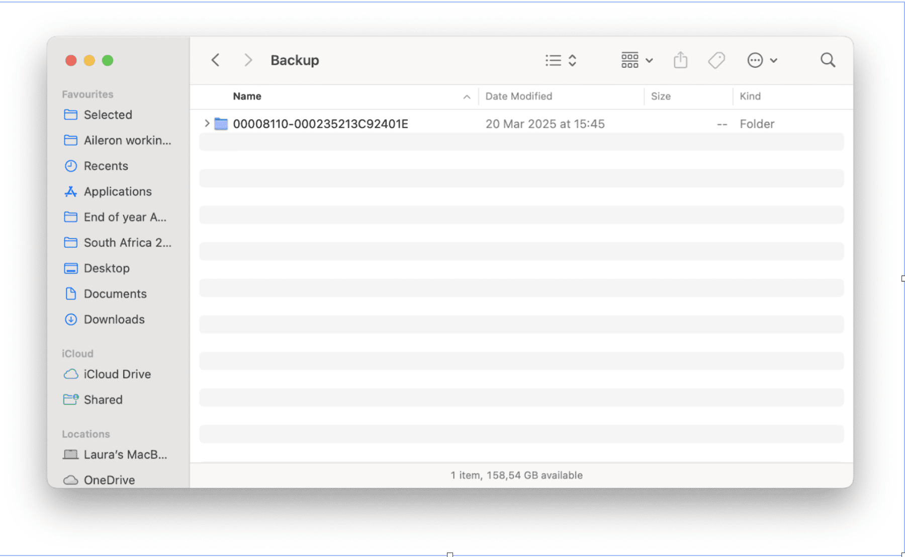 After the backup runs again, go into your external hard drive > iPhoneBackups and make sure the modified date updates. You should see a folder with a long string of letters and numbers. That's your latest backup.