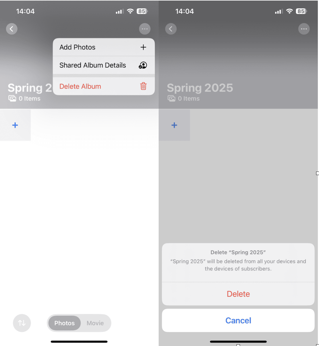 Delete a Shared Album