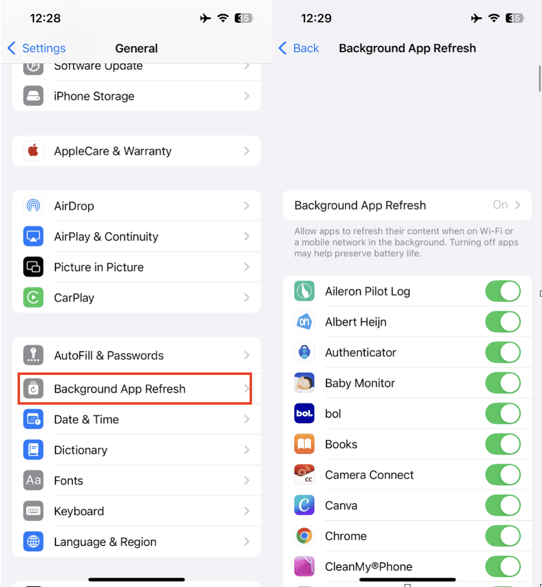 Go to Settings app > General > Background App Refresh and disable this feature; this will help to reduce app activity and resource drain on your iPhone.