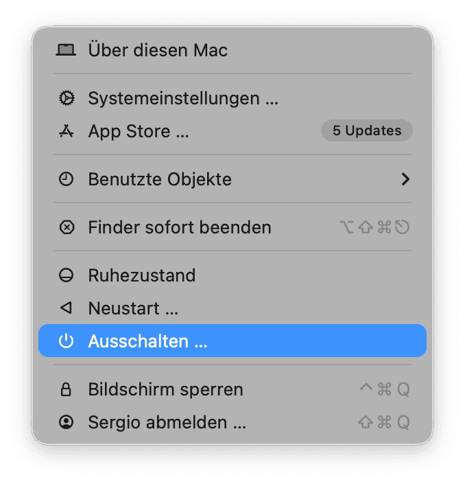 - Fahren Sie Ihren Mac über das Hauptmenü von Apple herunter.