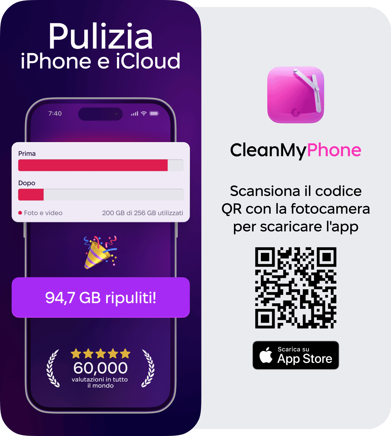 In cima a questo elenco di segnalazioni c'è CleanMy®Phone. Quando si tratta di liberare spazio su iPhone, questa app ha esattamente quello che fa per te.